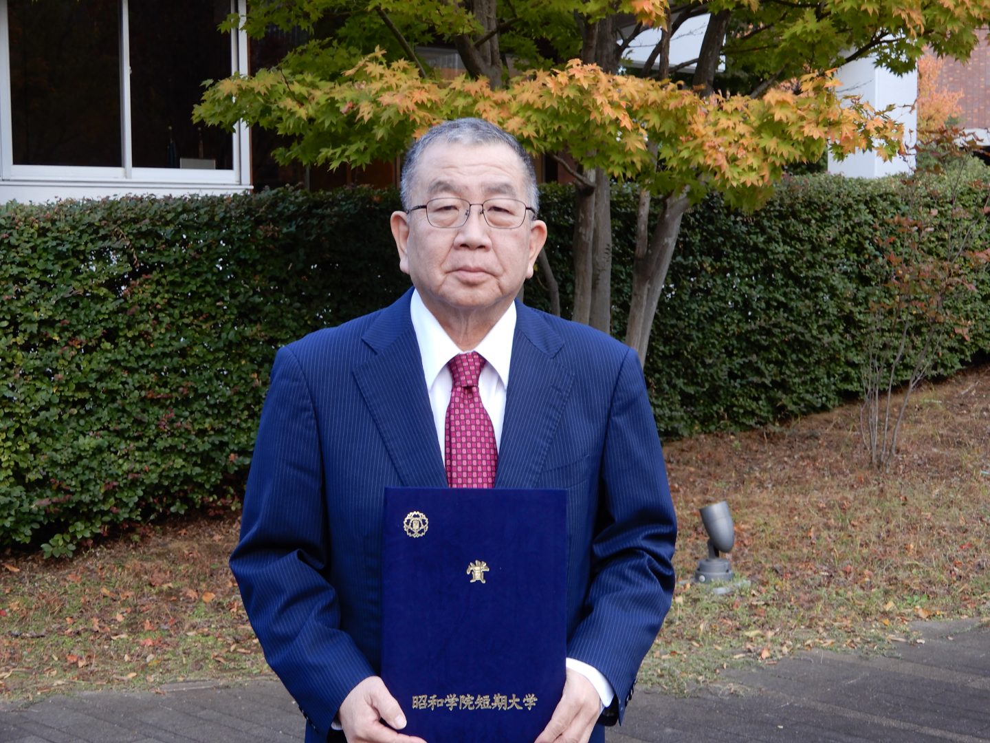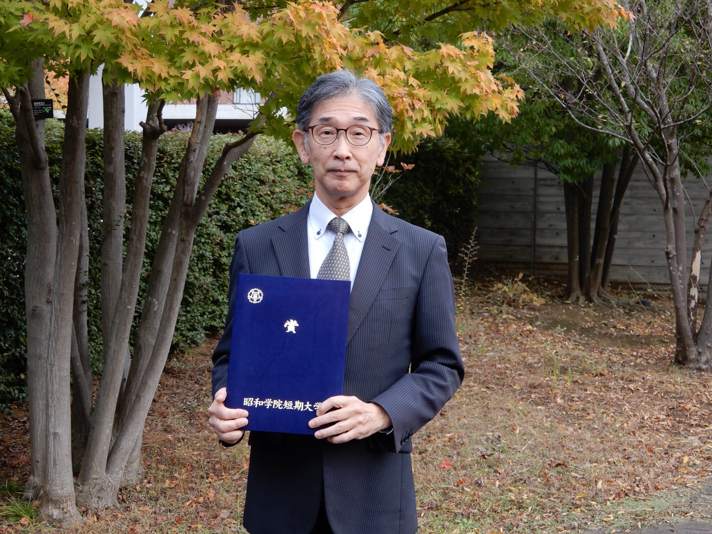 本学では、授業改善のための学生による授業評価アンケートを実施しています。 10月25日 2024年度の学生による授業評価アンケートの優秀教員の表彰を行いました。 今回は、人間生活学科こども発達専攻から白岩等教授 、ヘルスケア栄養学科から佐野典行教授の2人が受賞されました。