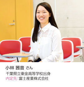 入学当初から就職セミナーがあり、その際に身だしなみや面接でのポイントなどを教えていただきました。担任の先生も面接前にさまざまなアドバイスをくださり、しっかり準備ができたので、安心して臨めました。