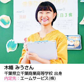 はい。前から食とこどもの両方に興味があったので。こどもたちにおいしい給食が提供できるよう頑張りたいです。就職活動当初は、どんな就職先があるのか、どこが自分にあっているのかなど不安もありました。でも、先生のこまめな声かけや、親身になって相談にのってくださったことで、とても心強かったです。